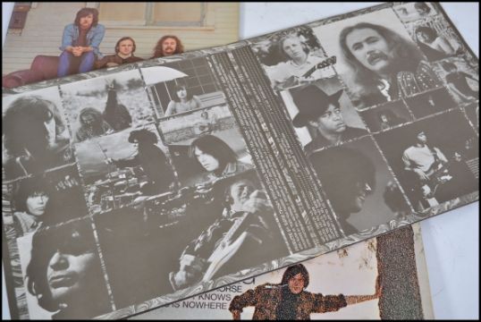 A group of vinyl long play LP records to include Neil young x 5, Crosby Stills and Nash x 2, Bob Dylan x 3 and The Travelling Wilbury's.