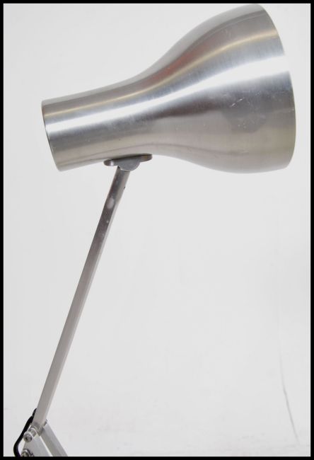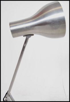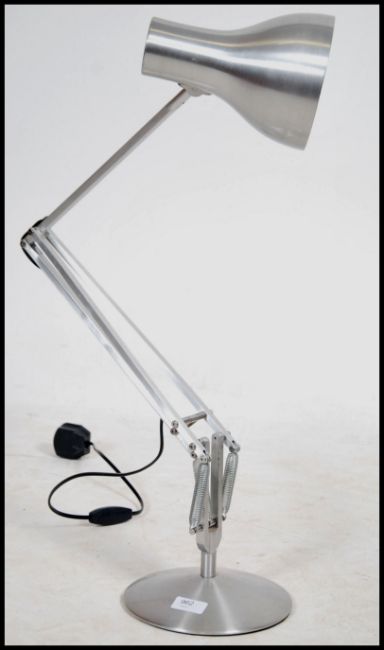 A contemporary polished steel desk lamp by Anglepoise lamp Co. Raised on a circular base having a pendant shade and marked to base. Measures 70cm high.