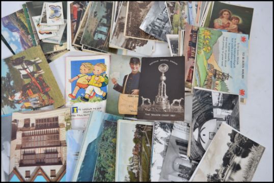 A collection of postcards to include Eastville Bristol Stadium - The Golden Crest 1937 greyhound trophy together with early topographical, humour, Novelty Post from Wisbech,  seascape, eclesiastical, houses etc