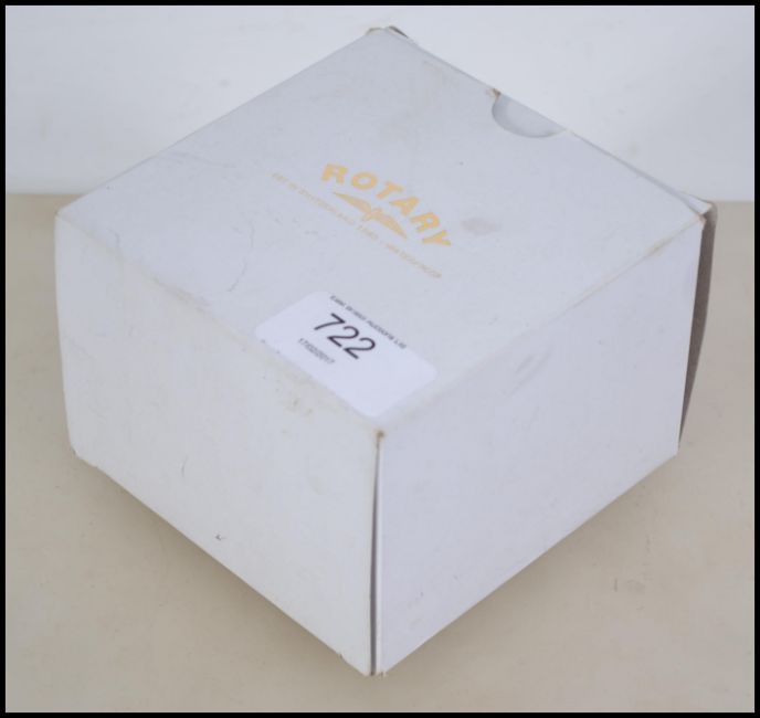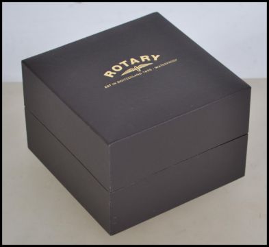 A good Rotary Automatic skeleton wristwatch having black dial with baton numerals and faceted hands. Set to a black leather strap complete with case and packaging in full working order.