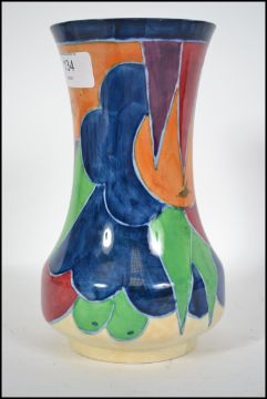 An Art Deco 1930s  Losol Ware Jazzette Goucher vase. Hand painted with vibrant colours. Signed to the base please see images. Measures 20cm high.