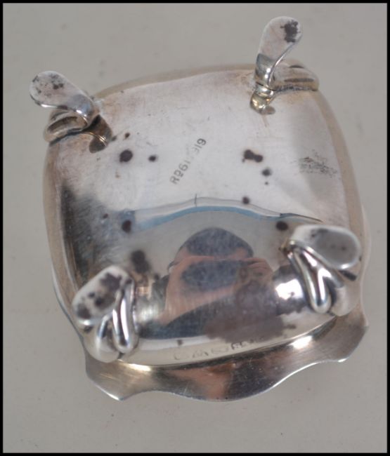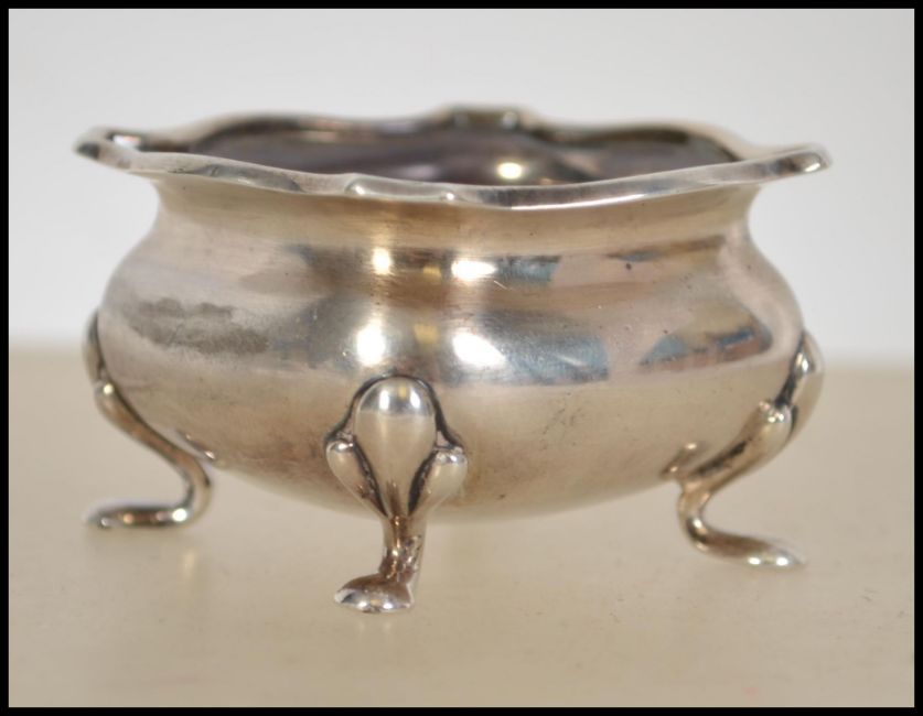 A silver hallmarked table salt on cabriole legs possibly by William Batt bearing Chester hallmarks for 1918. Total weight