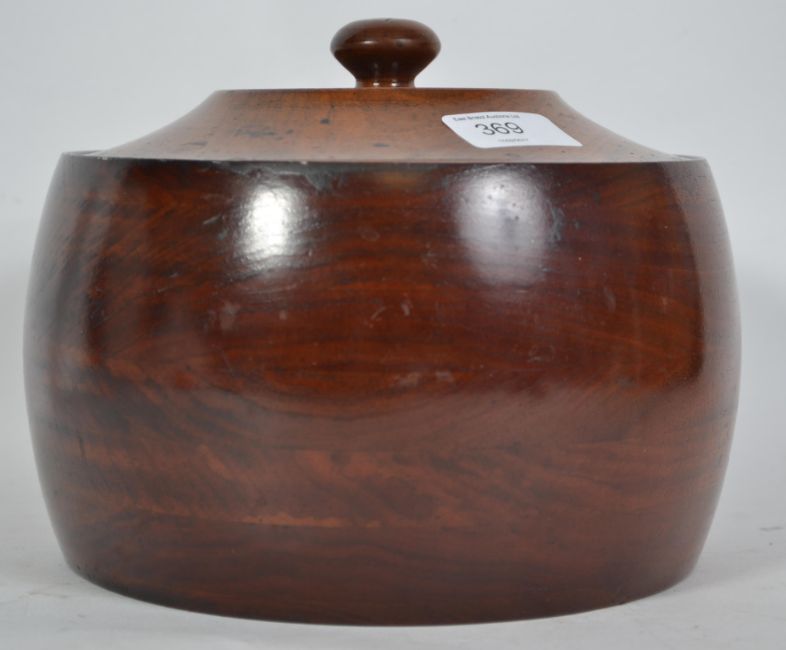 An unusual treen worked large lidded bowl being crafted from a wooden aeroplane propeller - prop. The base with holes consistent. Purportedly from a WW2 bomber.