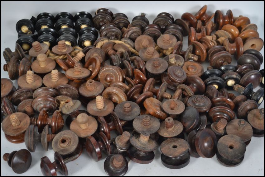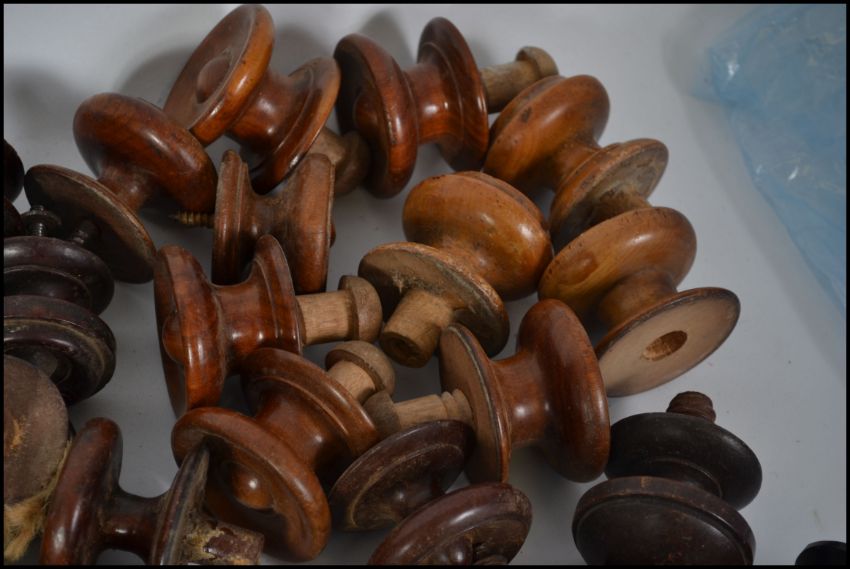 A large quantity of Victorian / Edwardian and later wooden furniture chest of drawers knobs, many complete sets of eight and six