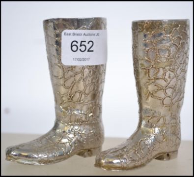 A pair of retro 20th century silver plate drinks measures in the form of boots ( see illustrations ). Measures 9cm high.