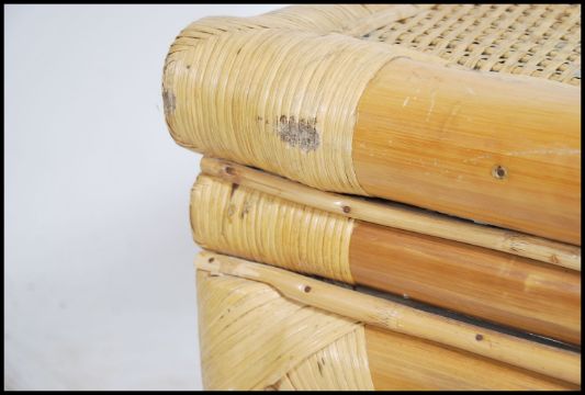 A 20th century bamboo and cane work coffee / occasional table being constructed from a bamboo frame