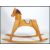 A vintage pine childs wooden rocking horse raised on sleigh runners with tassled main and saddle etc