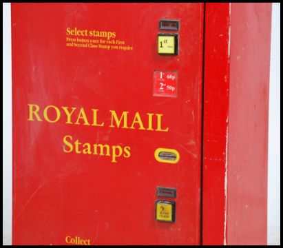 A 20th century wall hanging Post Office point of sale stamp vending machine.