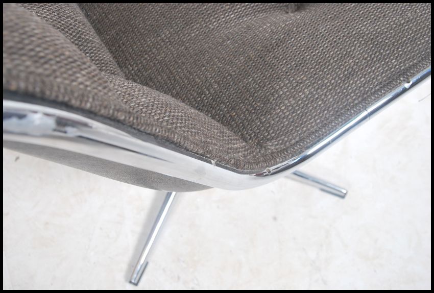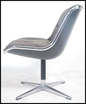 A retro 20th century Charles Pollock believed model 1251 side chair being  manufactured by Knoll International and set on swivel base. Measures 83cm high x 60cm wide x 70cm deep.