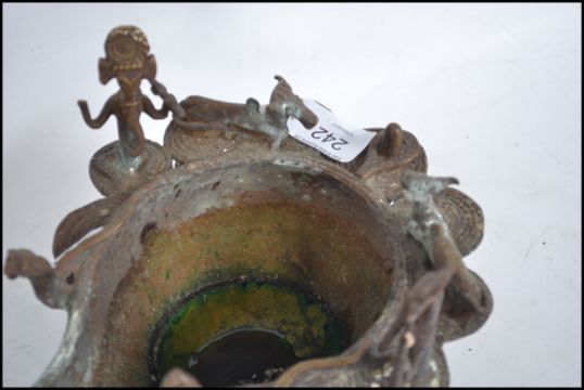 An unusual anglo colonial cast metal 19th century oil lamp - burner surmounted with deities possibly from India.
