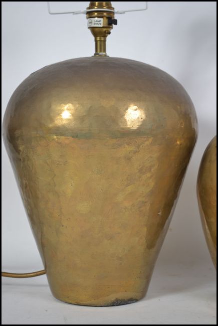 A pair of retro 1980's hand beaten effect brass table lights originally purchased from Habitat.