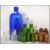 A collection of vintage blue and green glass Apothecary bottles dating back to the early 20th century