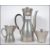 A mid century KMD dutch 3 piece pewter tea service / coffee service  comprising coffee pot, creamer and sugar bowl. All stamped to the base. The tallest measures 23cm high.