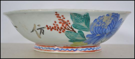 A believed 19th century Chinese ceramic famille rose bowl with handpainted decoration being signed to the base