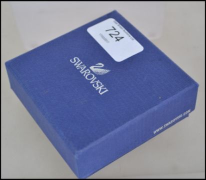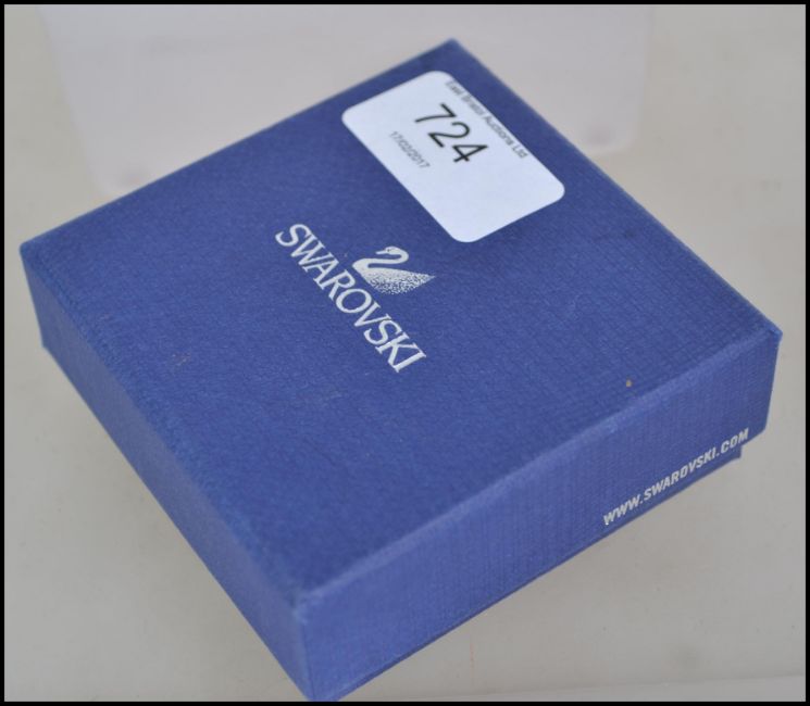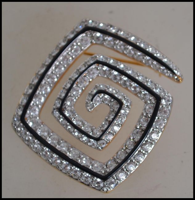 A contemporary Swarovski ladies crystal brooch in the ' greek key ' form having yellow metal back with pin. Complete in the box
