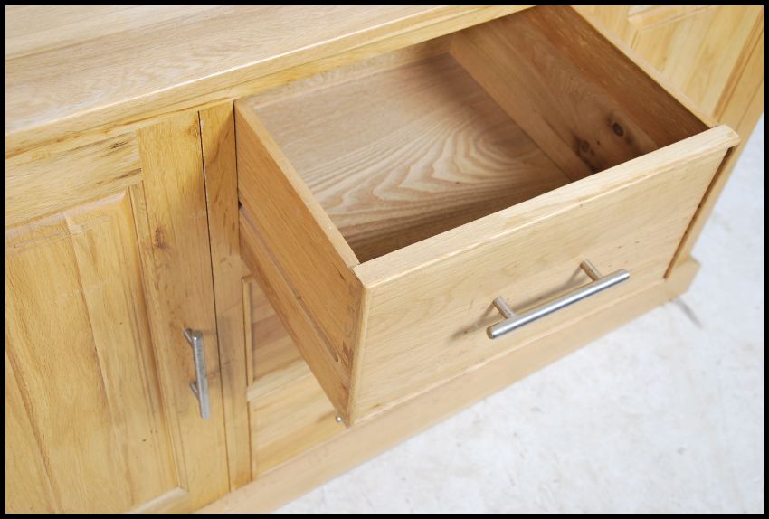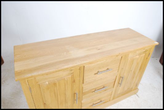 A contemporary light oak sideboard fitted with three drawers and two cabinets