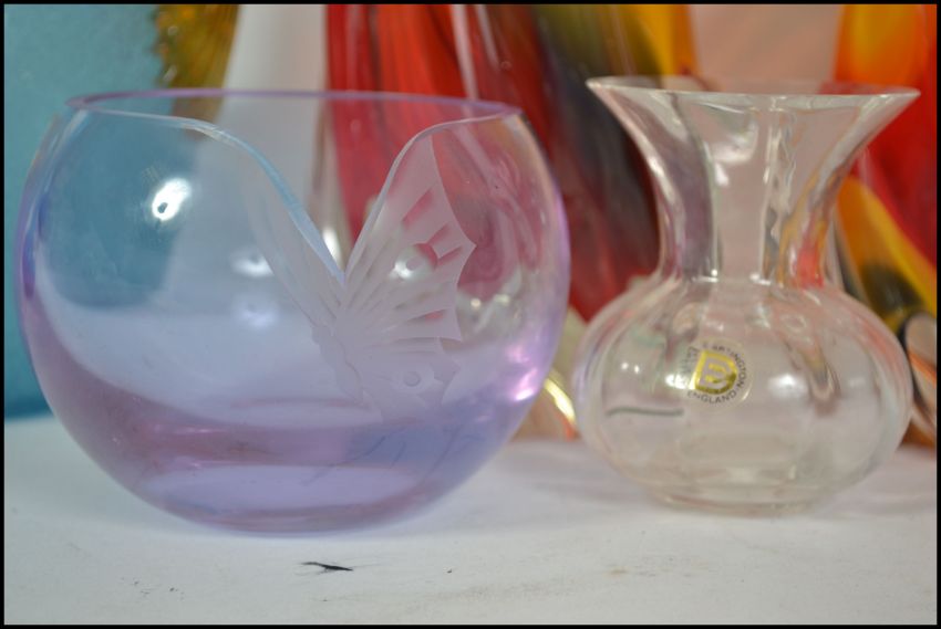 A collection of retro 20th century studio glass by various makers to include a pair of stunning heavy tutti frutti vases. Please see images.