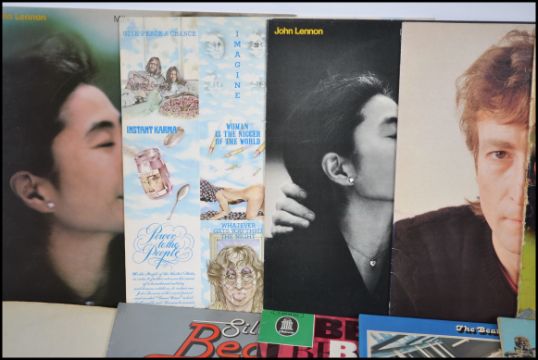 A collection of The Beatles and John Lennon vinyl long play / LP's records to include Beatles For Sale, Sgt Peppers, 1967 - 1970 / blue album X 2, 1962 - 1966 / red album, The Beatles Beat, Silver Beatles, The White Album No 0191165 top opening, Yellow Submarine, Abbey Road, Oldies, The Beatles Ballard's, The John Lennon Collection, Double Fantasy, Shaved Fish and Milk and Honey.