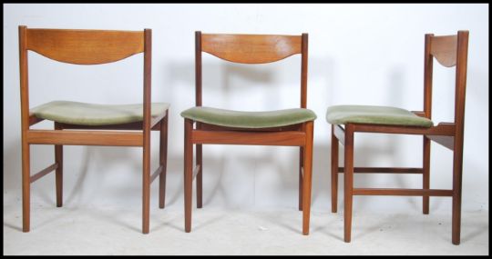 A superb Danish manner teak wood extending dining table by Kofod Larsen for G-Plan being raised on teak tapering supports with pierced frieze having extending ends to allow additional leaves. Matching sideboard in lot 1010a