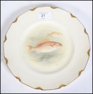 A Royal Doulton Sea Bream cabinet plate by C Hart stamped to the base together with another cabinet plate by Royal Doulton. Measures 22cm across.