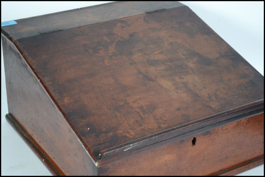 A 19th century Victorian mahogany Clerks table top writing slope having a hinged top revealing a spacious interior.