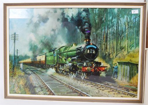 2x Terence Cuneo prints: ' Cathedrals Express ' - Terence Cuneo, 1969. Large framed and glazed print of a railway locomotive. 57x82cm and ' The Lickey Incline ' - Terence Cuneo, 1968. Large framed and glazed print of a railway locomotive scene. 57x82cm