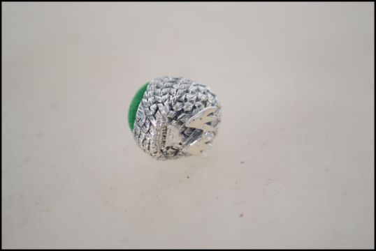 A silver pin cushion in the form of a bird. Marked sterling. Measures 2cm high
