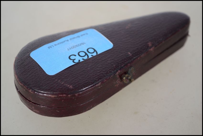 An early 20th century leather cased Champagne tap. The fine instrument with screw thread and handle having additional spikes
