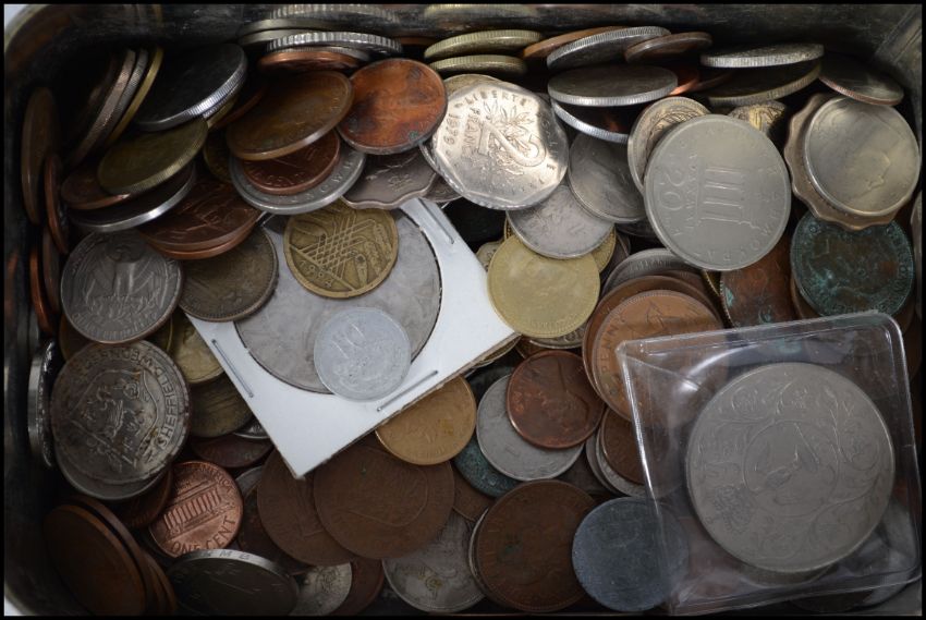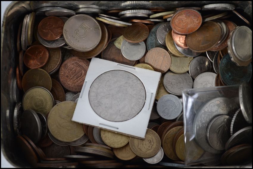 A collection of assorted vintage and antique coins, mostly 20th century, some older.