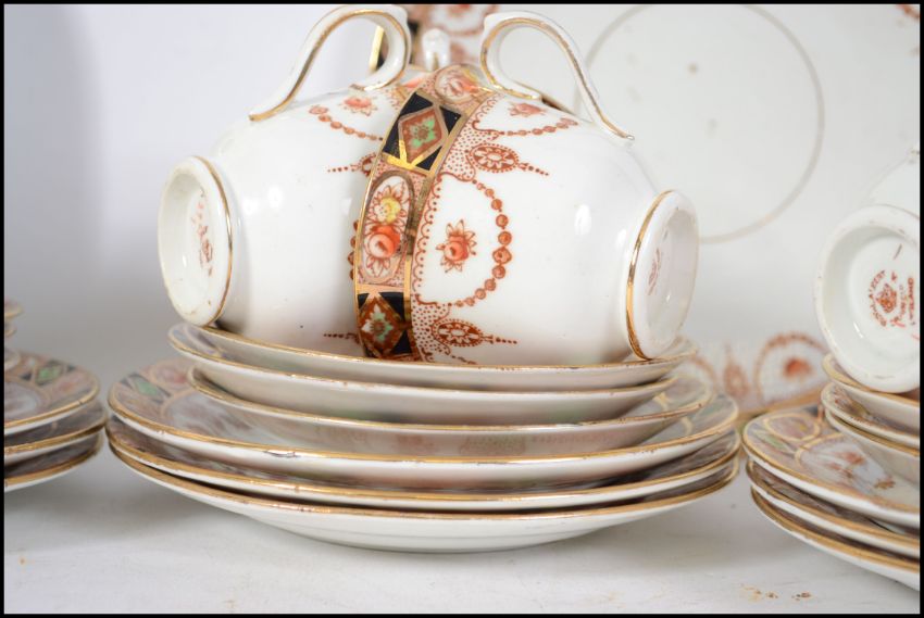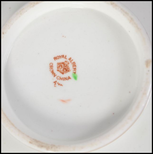 A Royal Albert Crown China part tea service dating to the early 20th century comprising cups, saucers and bowls etc being stamped to the base