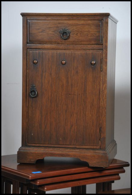 A dealers lot to include drop leaf / gate leg dining table, Edwardian walnut pot cupboard, mahogany coffee table and mahogany nest of tables, 1930's oak 3 tier barley twist trolley and others etc Measures: 73cms high.