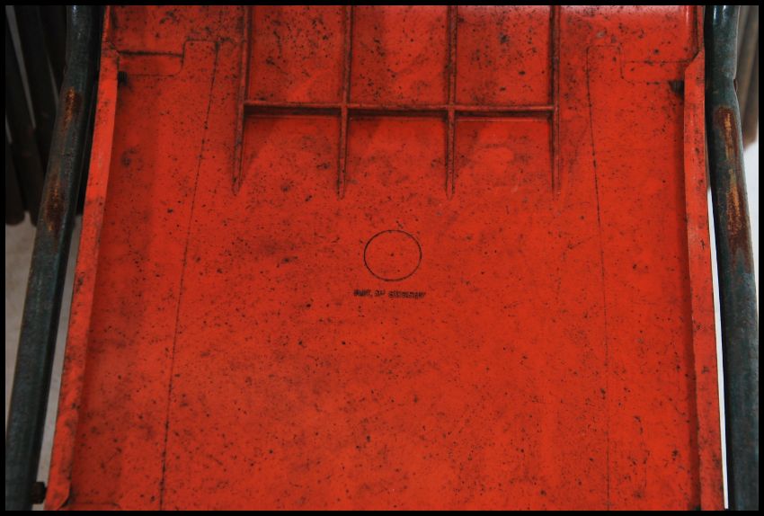 A good stack of vintage mid century stacking chairs having painted panel seats and back rests being raised on tubular metal frames. Measures:  85cms high x 45cms wide x 55cms deep.