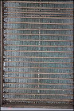 Agricultural seed sorting tray.  A hardwood frame and struts with iron meash sieve.  This 20th century industrial working piece was used for drying fruit as well as sorting and separating seeds.
