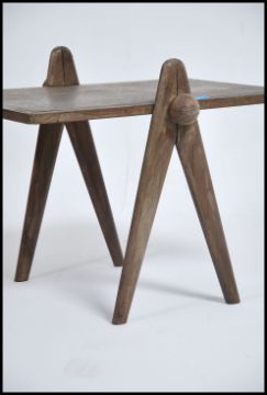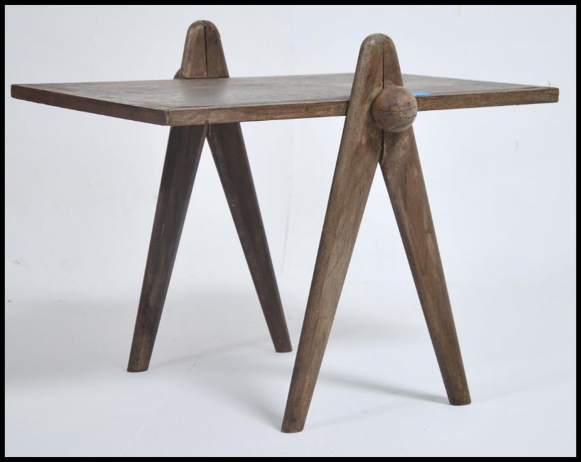 A retro mid 20th century teak occasional / side table in the manner of Robin Day for Hille, having a square top raised on angular supports. Measures:  51cms high x 61cms wide x 43cms deep.