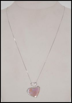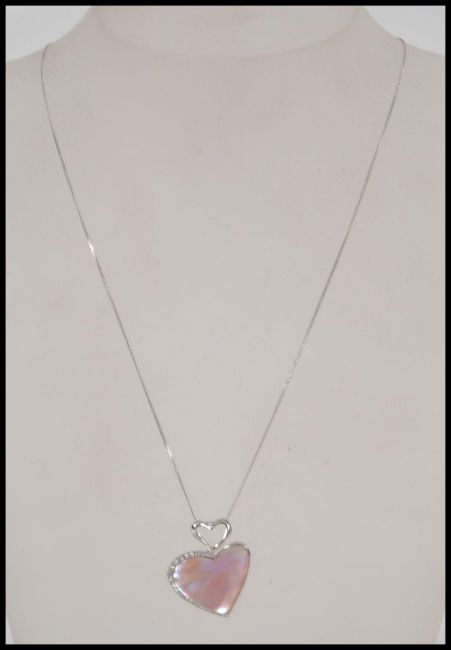 A 9ct / 375 white gold necklace and mother of pearl & diamond heart pendant. Marked 9k / 375. Chain measures 18" long   / Weight 5.1g