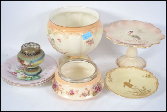 A group of 19th century and later Ivory Blush wares to include a Crown Devon jardiniere, cheese dish, Limoges examples etc. Please see images. Measures:  23cms high tallest.