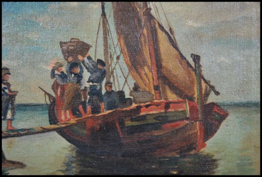 An oil on canvas painting of a continental scene being signed to the corner and set within a gilt frame. The verso of the canvas marked for Winsor & Newton