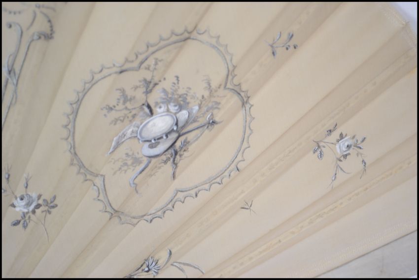 A beautiful early 20th century ladies fan by Nathalie of 187a Sloane Street, London. The silk fan with handpainted classical scene complete in the original box with notation ( as above ). Measures:  box 38cms long.