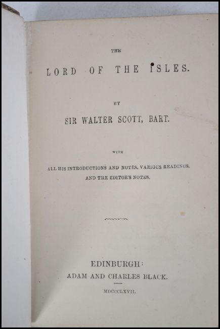 The Lord of the Isles by Sir Walter Scott 1852 being set within a treen worked cover with scene of Dunstaffnage Castle