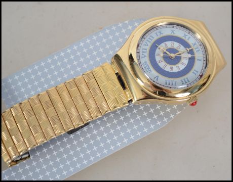 A vintage Swatch Watch ' Irony ' complete in the original presentation case set in gilded stainless steel case and strap