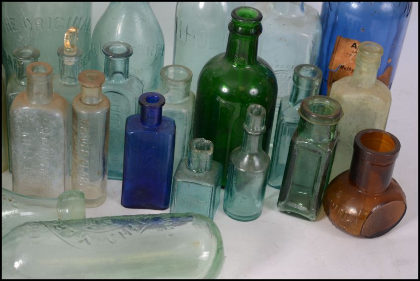 A large collection of 19th and early 20th century bottles to include Hamilton, Torpedo, lemonade bottles and poison bottles all of varying colour etc