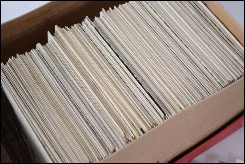 REAL PHOTO postcards. All small size black & white British views.Mixed age.Large range in shoebox approx 600.