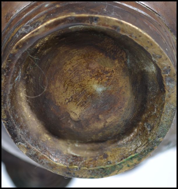 An unusual anglo colonial cast metal 19th century oil lamp - burner surmounted with deities possibly from India.