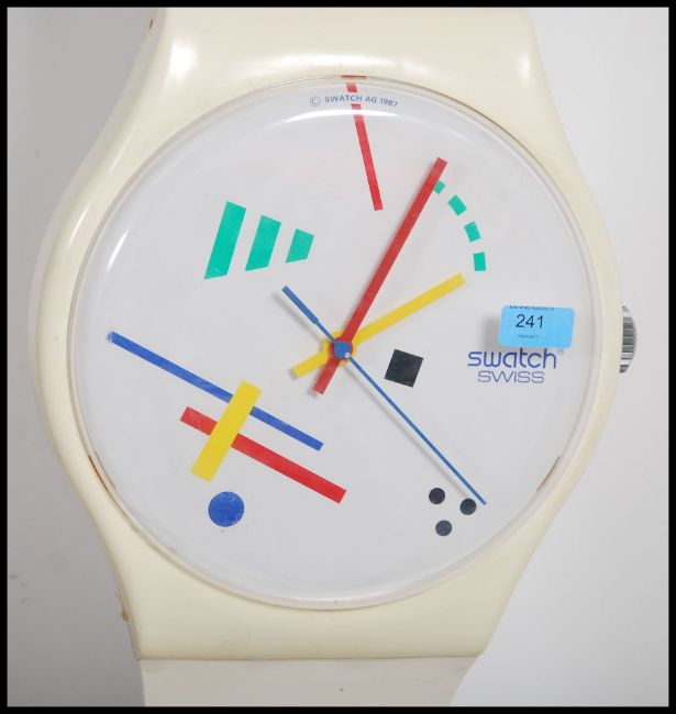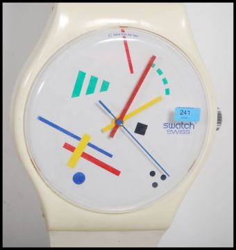 A retro 1980's wall hanging clock by Swatch in the form of a wrist watch 1987 Vasily Maxi Swatch wall clock