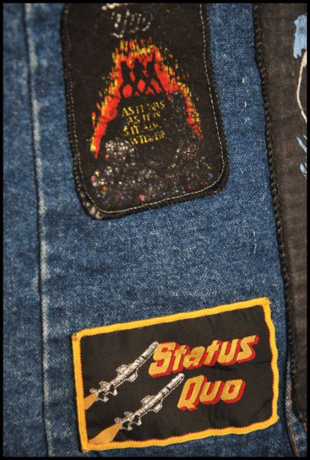 Status Quo; 2x original Status Quo demin jackets - each filled with an assortment of Status Quo related patches (from various tours). Both showing the original lineup (Rossi, Parfitt, Coghlan, Lancaster) and later lineups of the band.