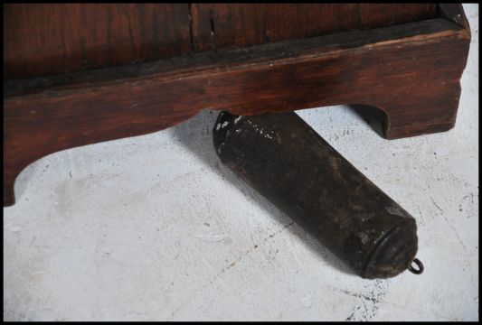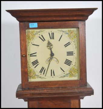 A Victorian painted face oak longcase / grandfather clock. The painted face with secondary aperture, faceted hands and roman numeral chapter ring. Complete with lead weight and pendulum.