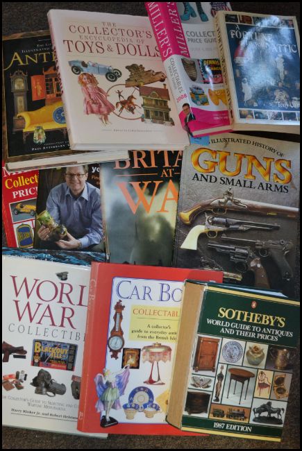 A good group of antique collecting guides and reference books to include Millers price guides, Guns and small arms, Whats in your attic, car boot sale collectables etc.
