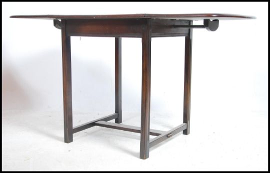 An Ercol beach and elm wood drop leaf dining table raised on squared legs with central stretcher having drop leaves either side