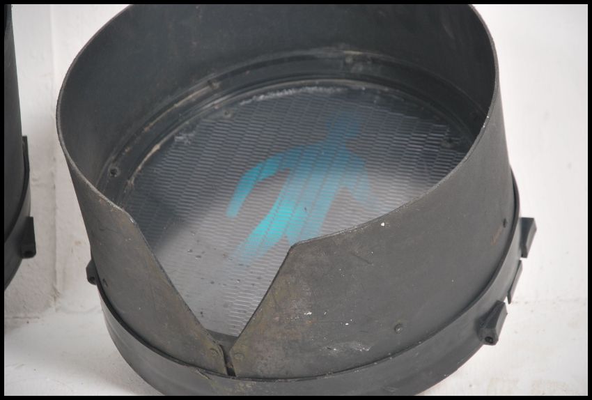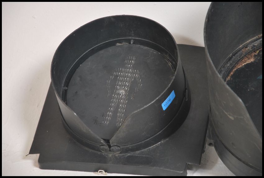 A 20th century industrial traffic light sign - arrow / man in red led lights being houses in resin cast body ( original with blinker hood ). Measures:  37cms diameter x 38cms wide.