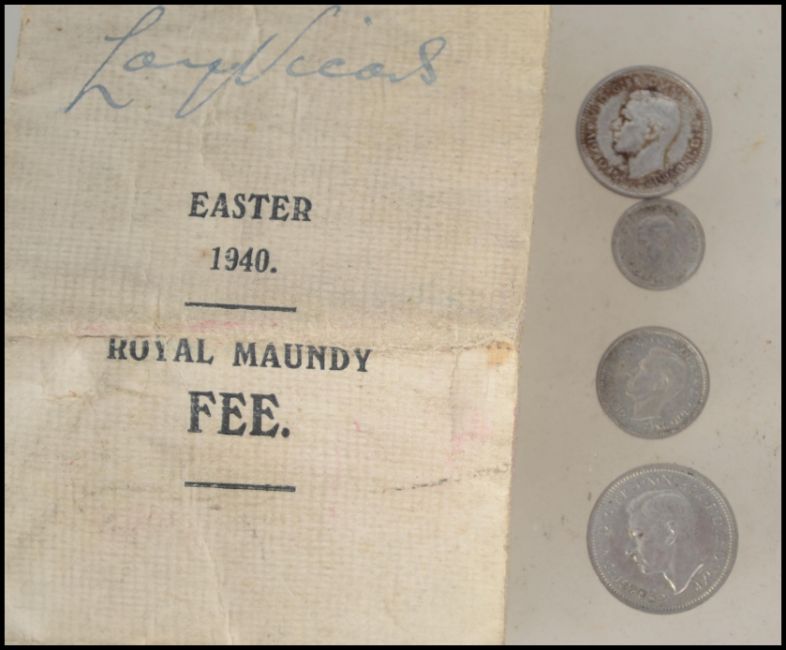 Great Britain, 1940 maundy money 4-coin set, George VI, rev. crowned denomination dividing date within wreath, in original retailers envelope.
